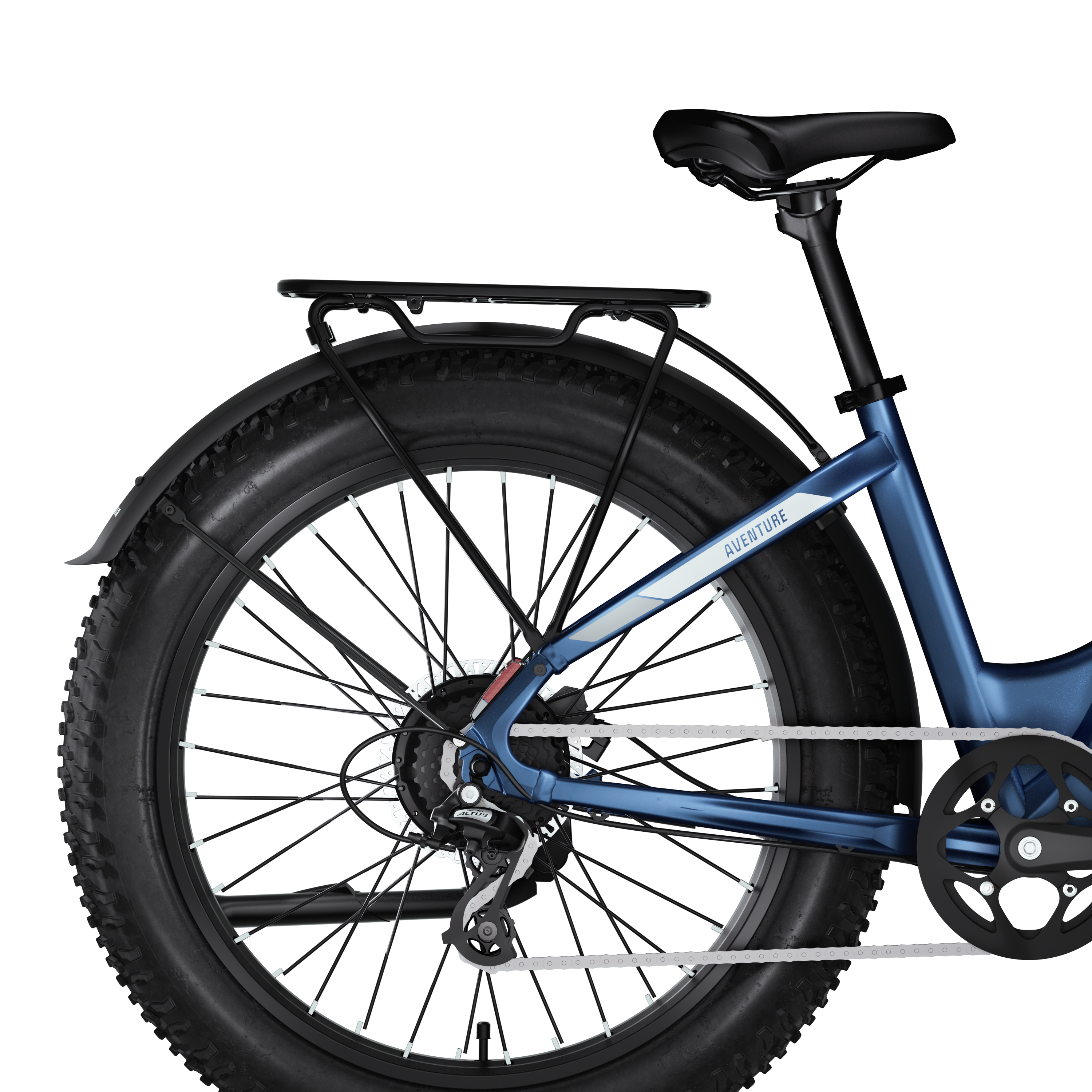 Take adventure by the reins with the Aventure 2 Step-Through, fully loaded with a torque sensor, LED lighting w/turn signals, front & rear fenders, and rear rack.