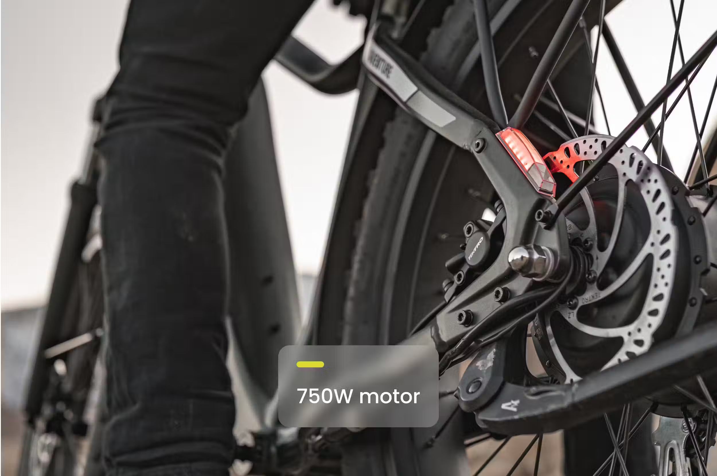 Take adventure by the reins with the Aventure 2 Step-Over, fully loaded with a torque sensor, LED lighting w/turn signals, front & rear fenders, and rear rack.