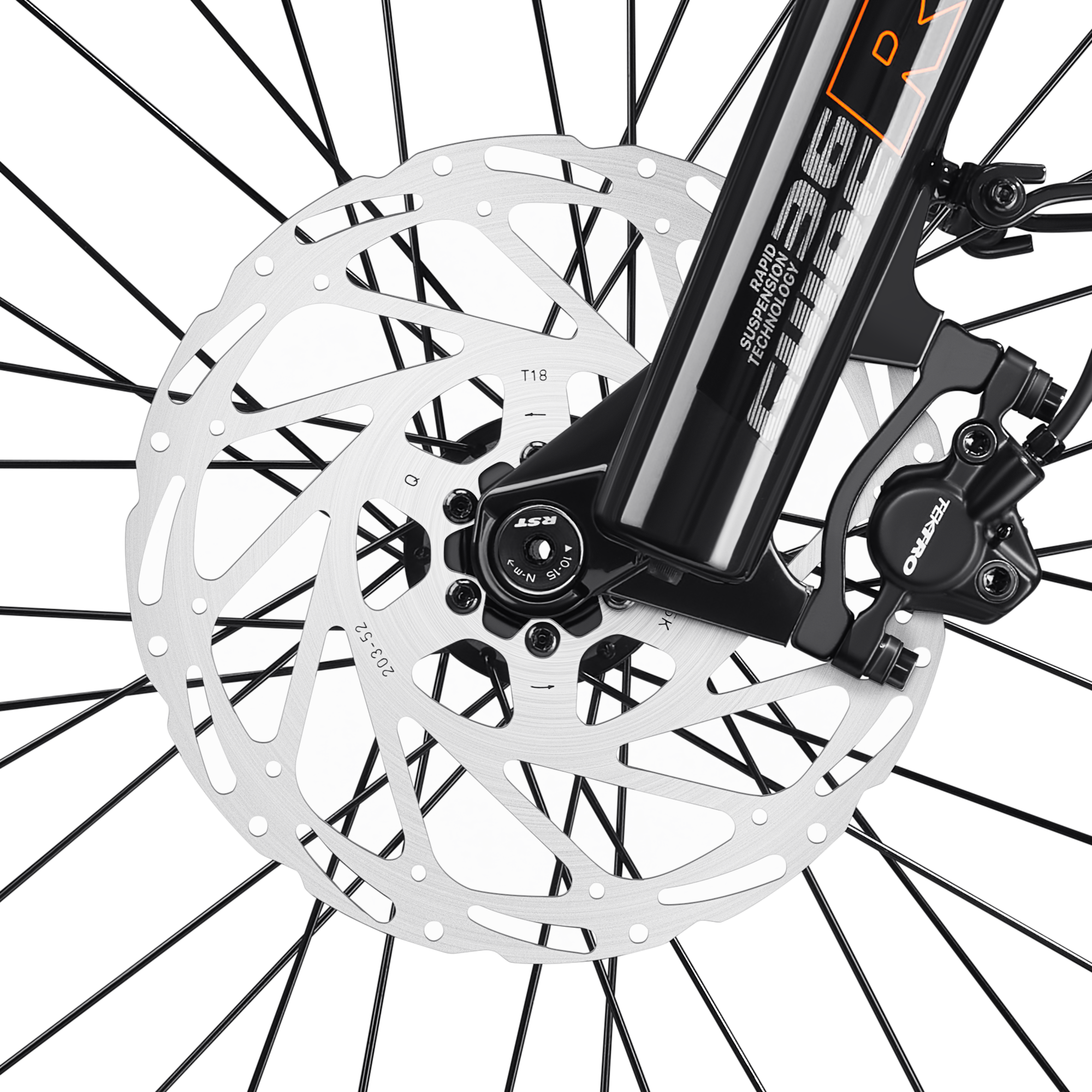 | Fork | RST Hydraulic Suspension, 100mm travel, lock-out, 36mm stanchions |