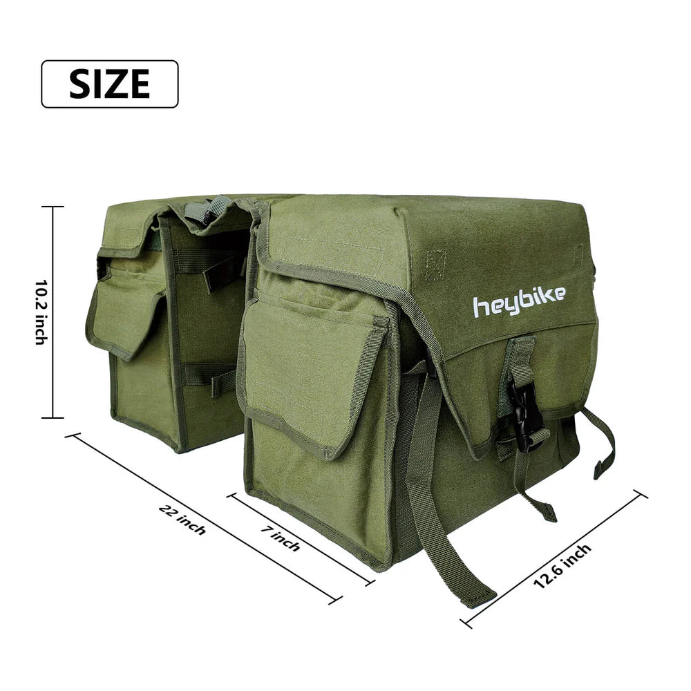 The bike rack pannier bag comes with 2 large side pockets. Each side has 15L storage. 30L capacity in total is enough for your daily commute or shopping loads.