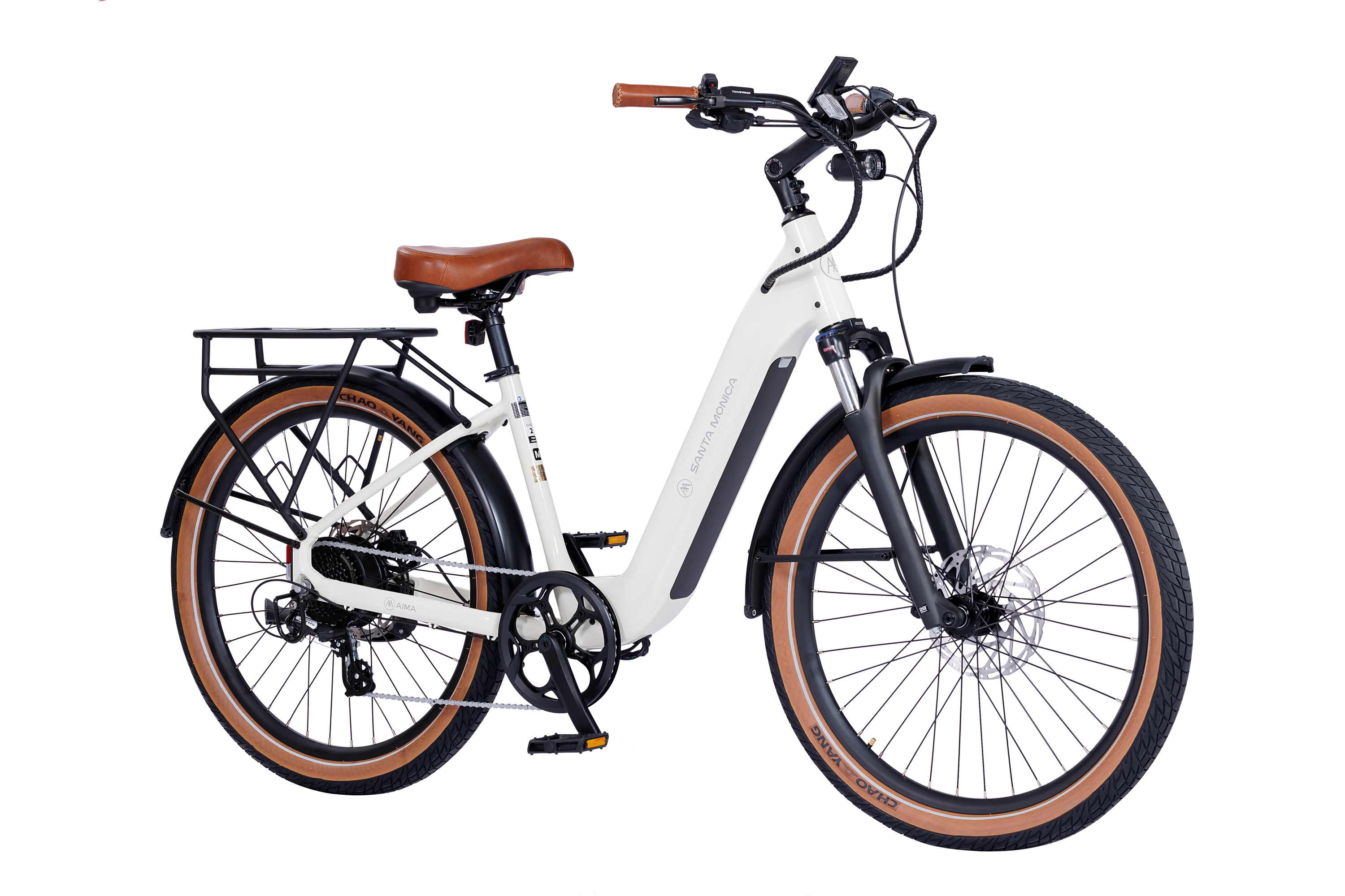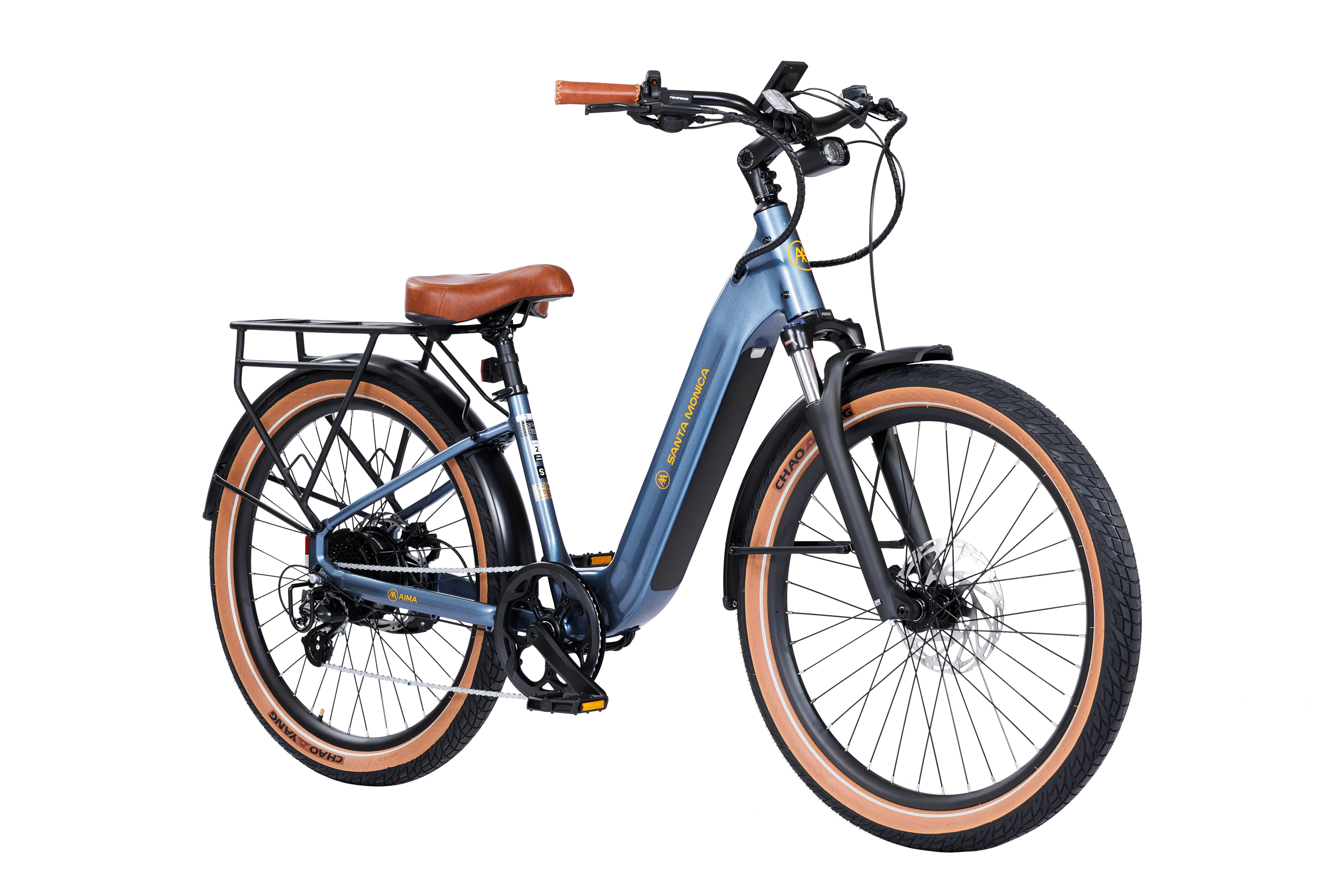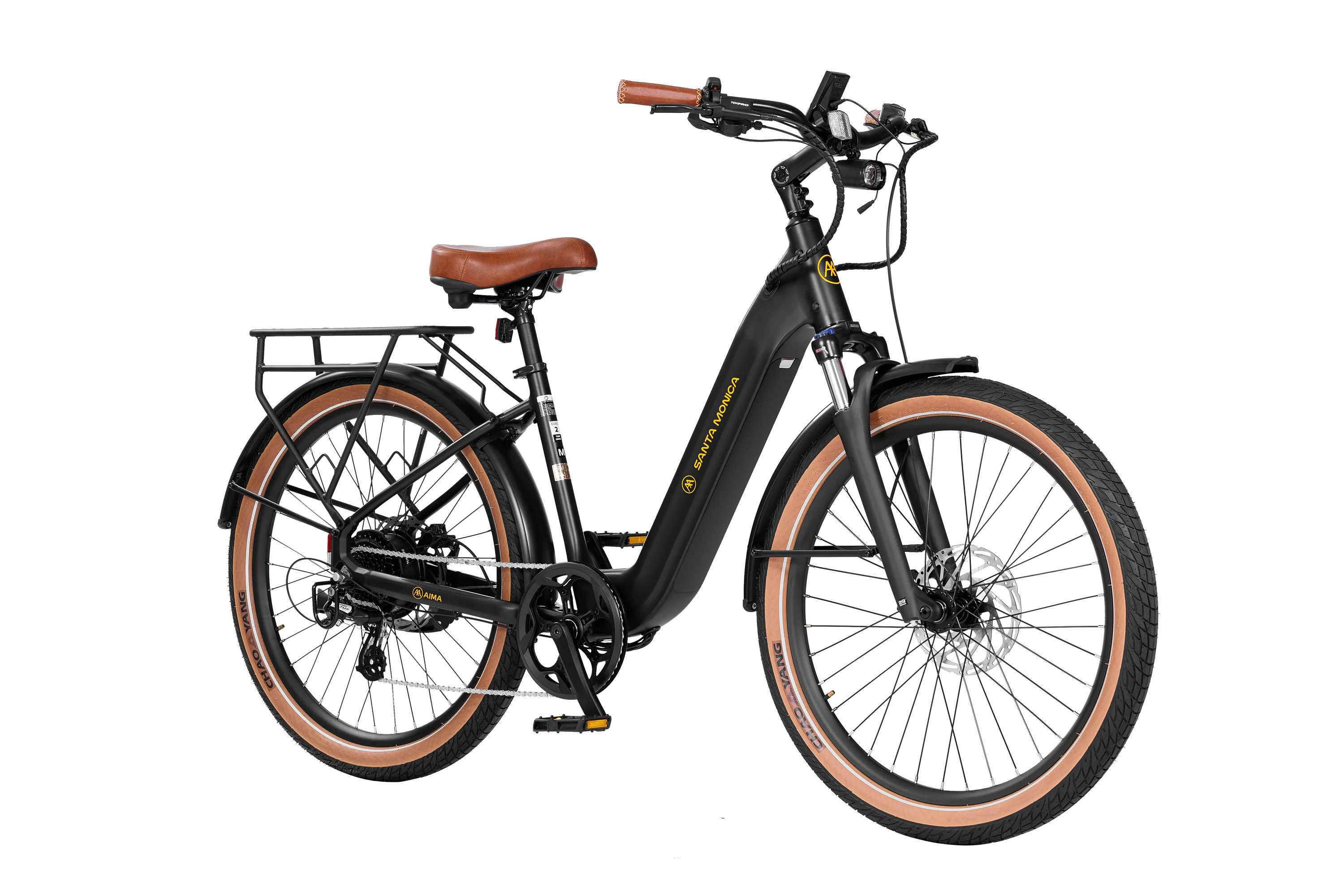 Tires: Chao Yang, 27.5 x 2.6’’, Retro Tan Wall,Reflective Side Strips, E-Bike Rated Casing