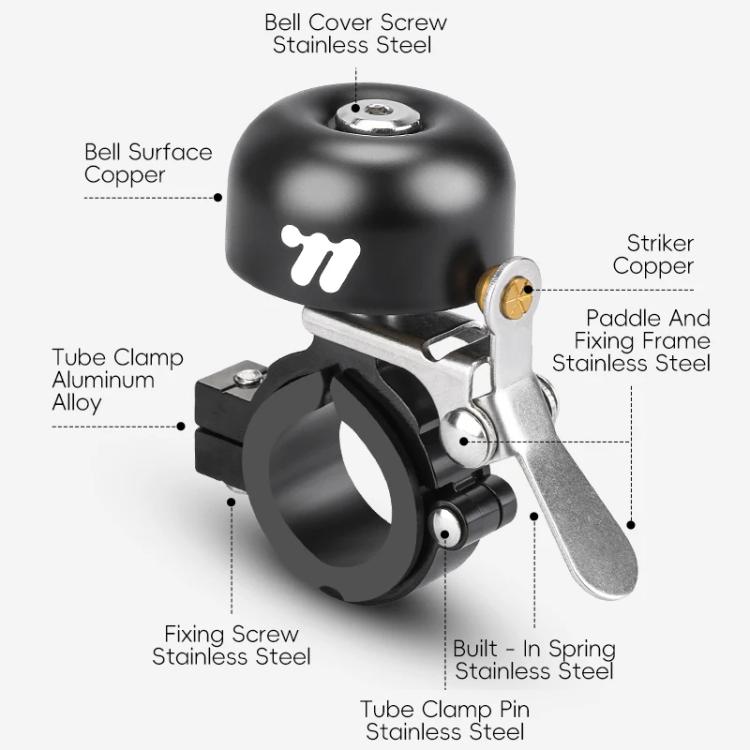 West Biking Bicycle bell in black fitting all types of normal and electric bicycles.