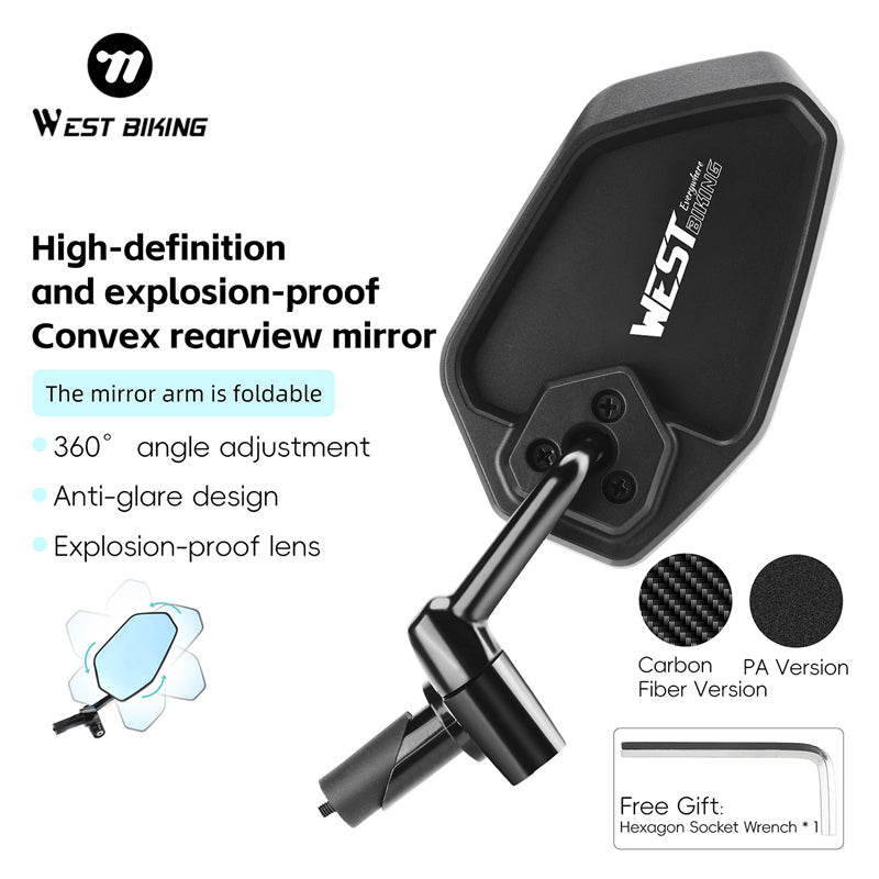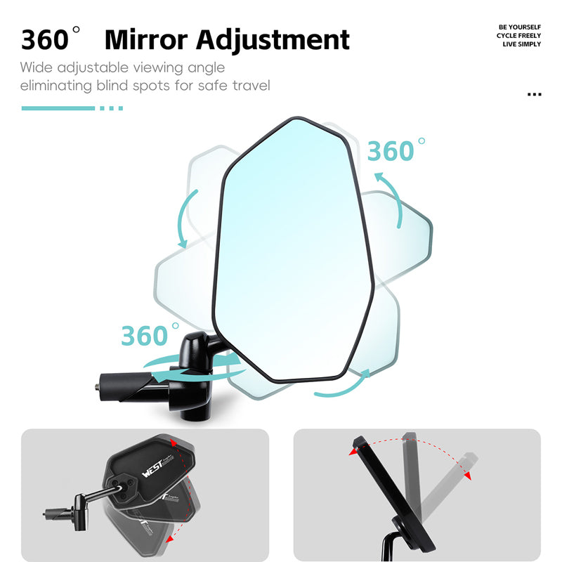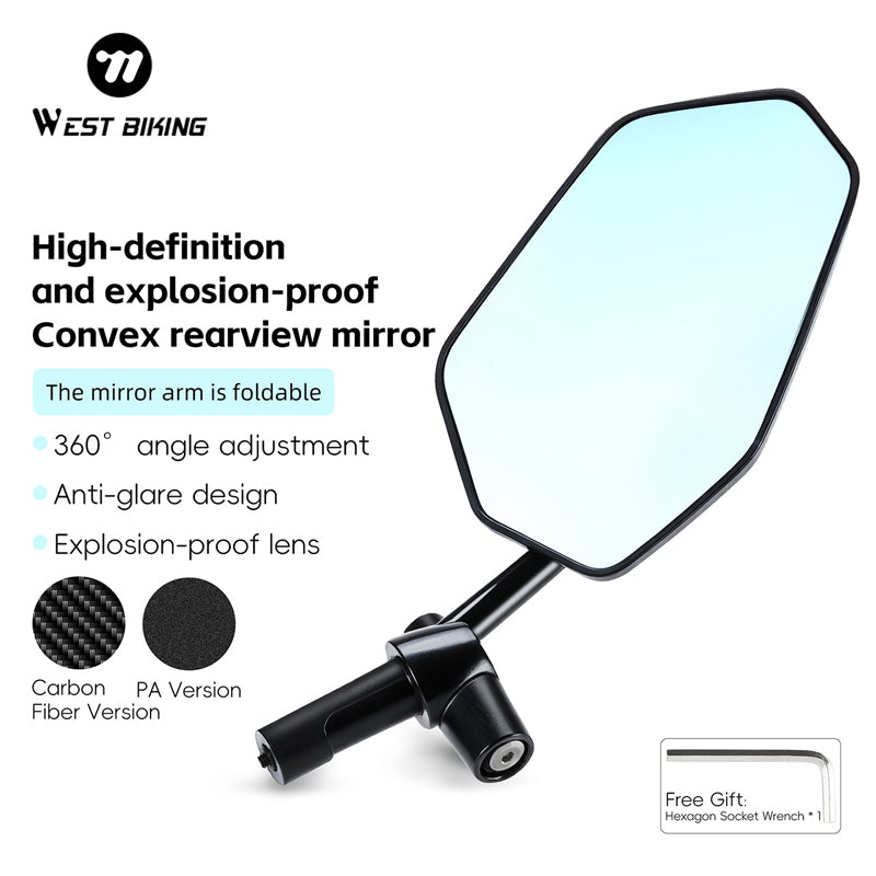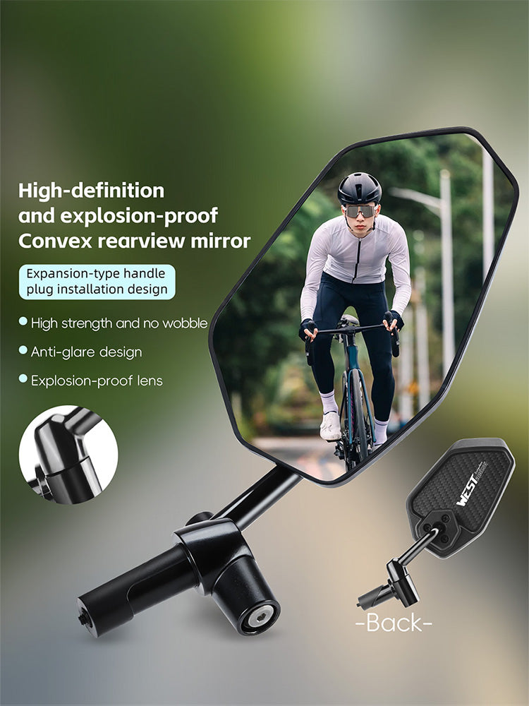 Enlarged Foldable HD Convex Bicycle Rear View Mirror 360° Rotatable Glass Bike Rearview Mirror